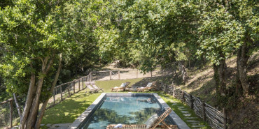 Characteristic 1800s stone country house renovated with pool, cottage, garden and olive grove for sale with amazing views of Cortona, Arezzo. A short gravel road leads to an enchanting hilltop position with woods, unspoiled nature, and endless views over the Valdichiana and the town of Cortona. This former farmhouse, dating back to the 19th century, has been completely renovated preserving its typical Tuscan style, featuring stone facades and interiors with exposed wooden beams and terracotta floors throughout. Some 165 square meters over two floors offer a large double living room with fireplace and an open plan kitchen on the ground floor and two bedrooms on the upper floor. The bathrooms have ceramic tiles and bath tube. The former hut has been partially renovated into a guest cottage with a living room, a bedroom, and the possibility to create a second bedroom. Surrounded by approximately 5 acres of private land, the property includes a landscaped garden, an above-ground oval swimming pool with stunning panoramic views, and an olive grove with 488 trees. An artesian well provides water for domestic use and irrigation. Private location only a few minutes from all amenities, ready to live in, perfect as a private all-year-round residence or for vacations, ideal for short-term rentals to host tourists for their stays in Tuscany.