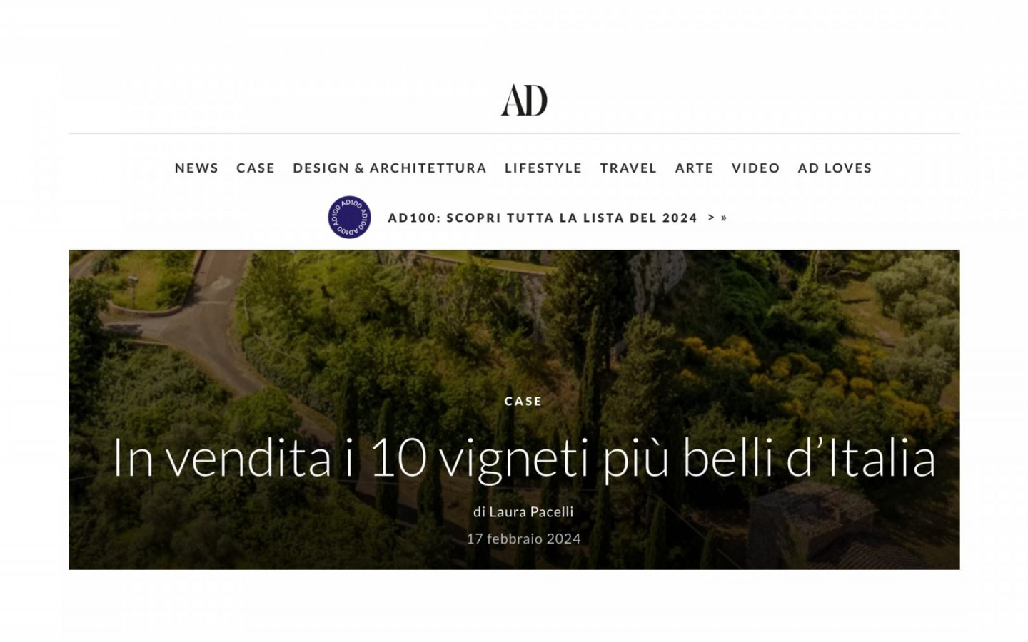 Architectural Design magazine includes Apolloni & Blom wineries for sale in Tuscany and Piedmont in a fantastic article by Laura Pacelli published on 17 February 2024. "To meet the demand of buyers, who are increasingly attracted by a "green" lifestyle, the luxury real estate market has increased the offer of estates with vineyards: castles, hunting lodges, modern structures that already exist or are planned for construction. Here are the 10 most spectacular properties from northern to central Italy...."